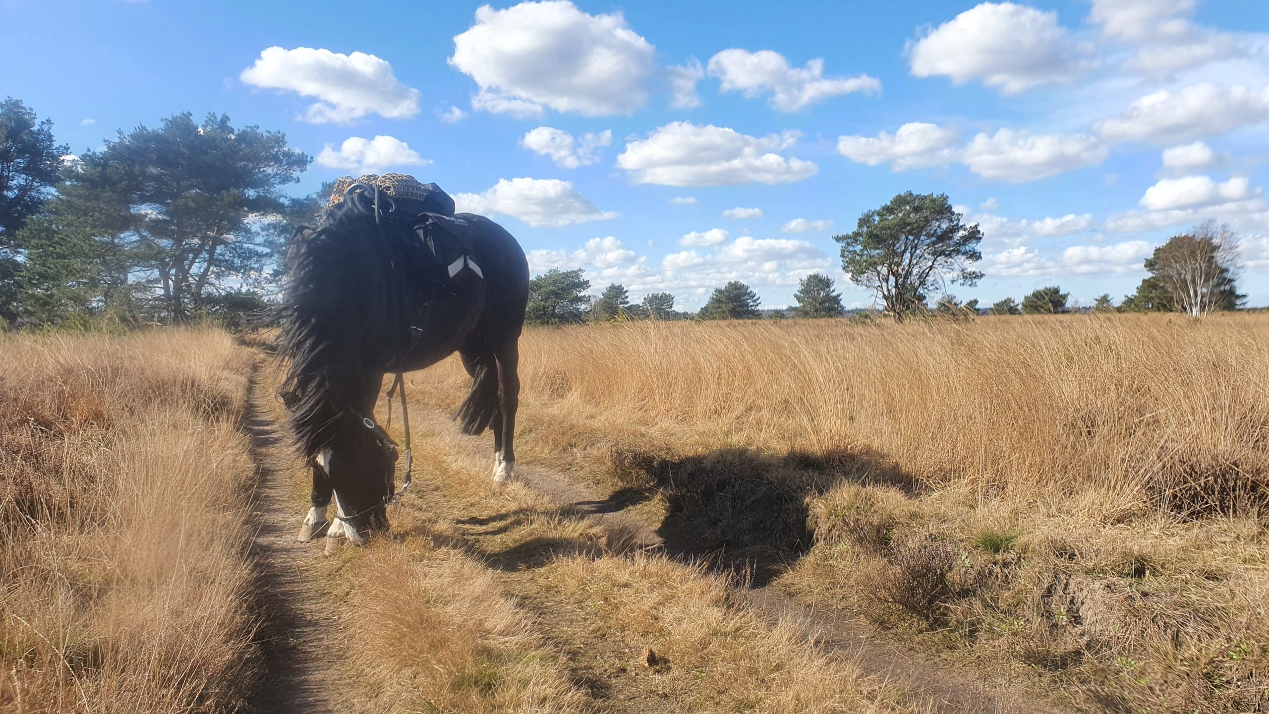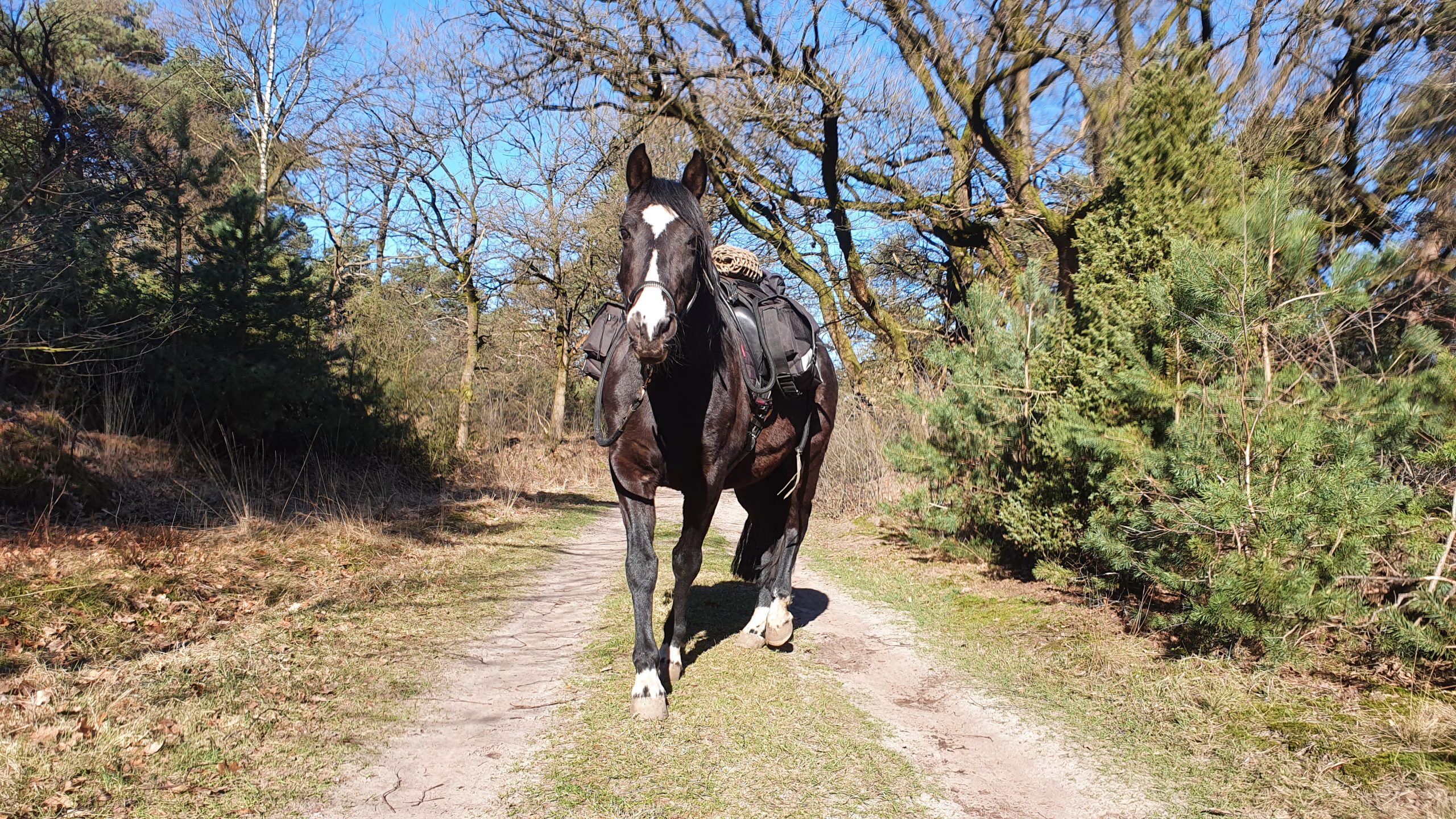 Het is zaterdag en dat merken we: mountainbikers, hardlopers, ruiters, wandelaars. Het bekende zinnetje wordt weer regelmatig naar ons geroepen: ‘Je kunt er ook op hoor!’ Het stoort me vandaag niet. De dag is te mooi en dit leven te goed voor negatieve gevoelens.