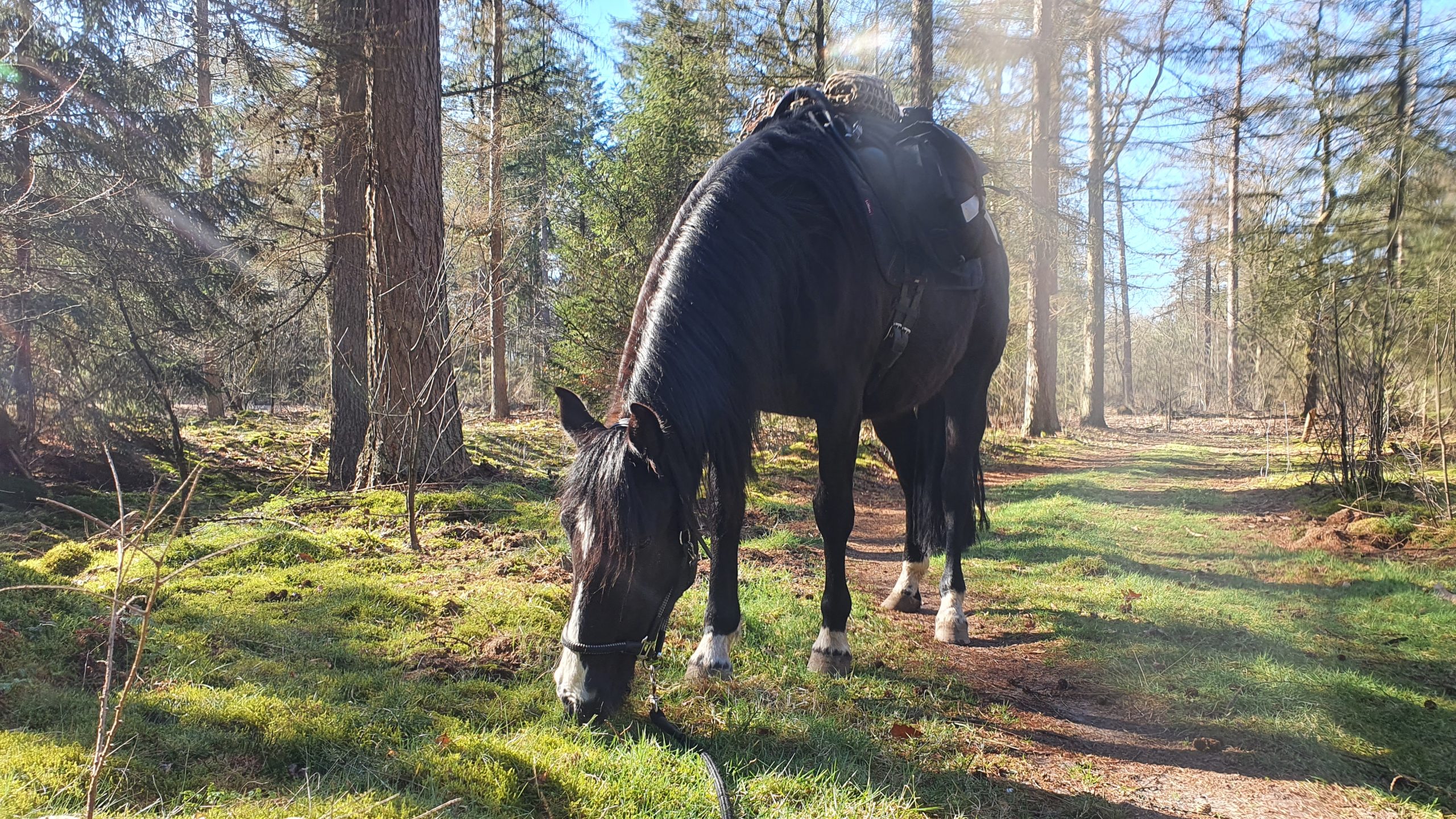 Voor Corvo is het minder ingewikkeld: Mag ik overal aan de mesthopen van andere paarden ruiken, mag ik overal gras eten en takjes wegknabbelen die echt door de natuur op ooghoogte gehangen zijn? We maken wat afspraken. Net zoals anders mag je alleen grazen als ik ‘vrij’ zeg, takjes laten we vandaag hangen en aan mest ruiken mag af en toe.